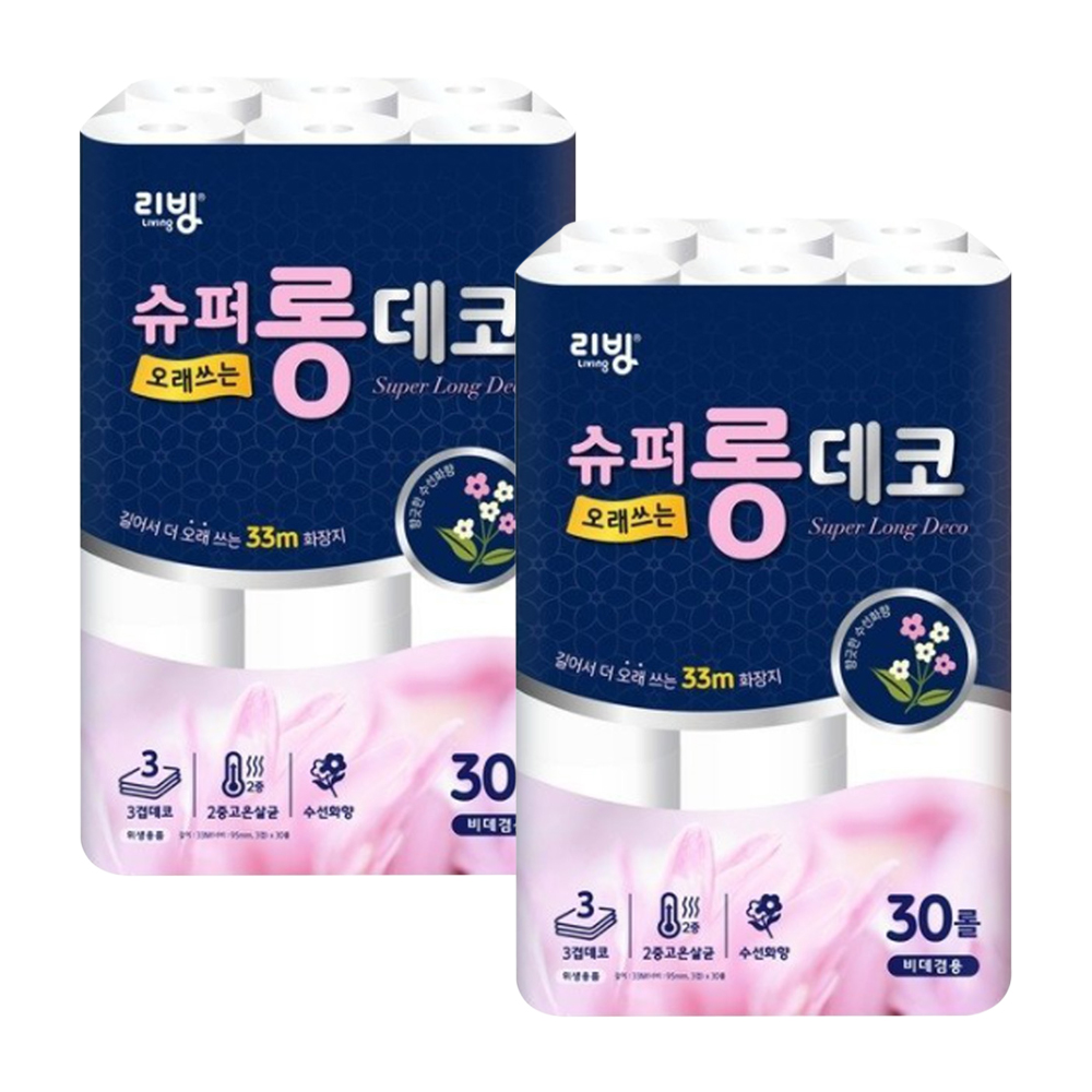 리빙 라벤더 슈퍼롱 데코 3겹 33m 30롤 화장지 x2